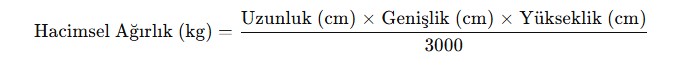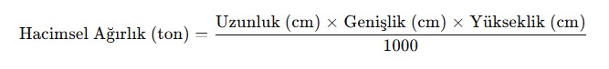 Hava Yolu İçin Hacimsel Ağırlık Formülü: